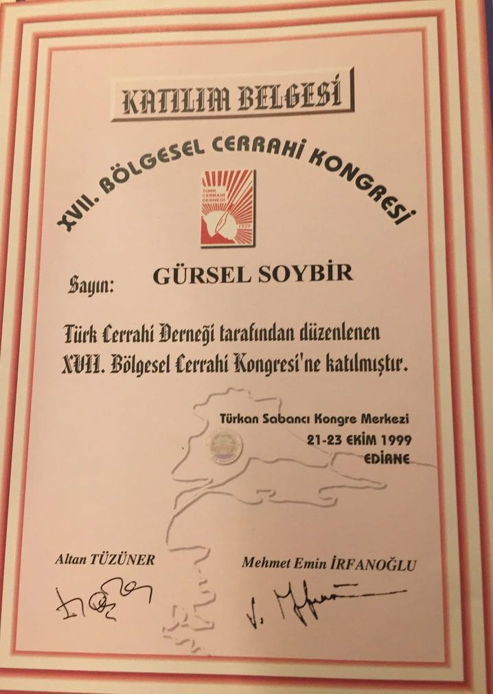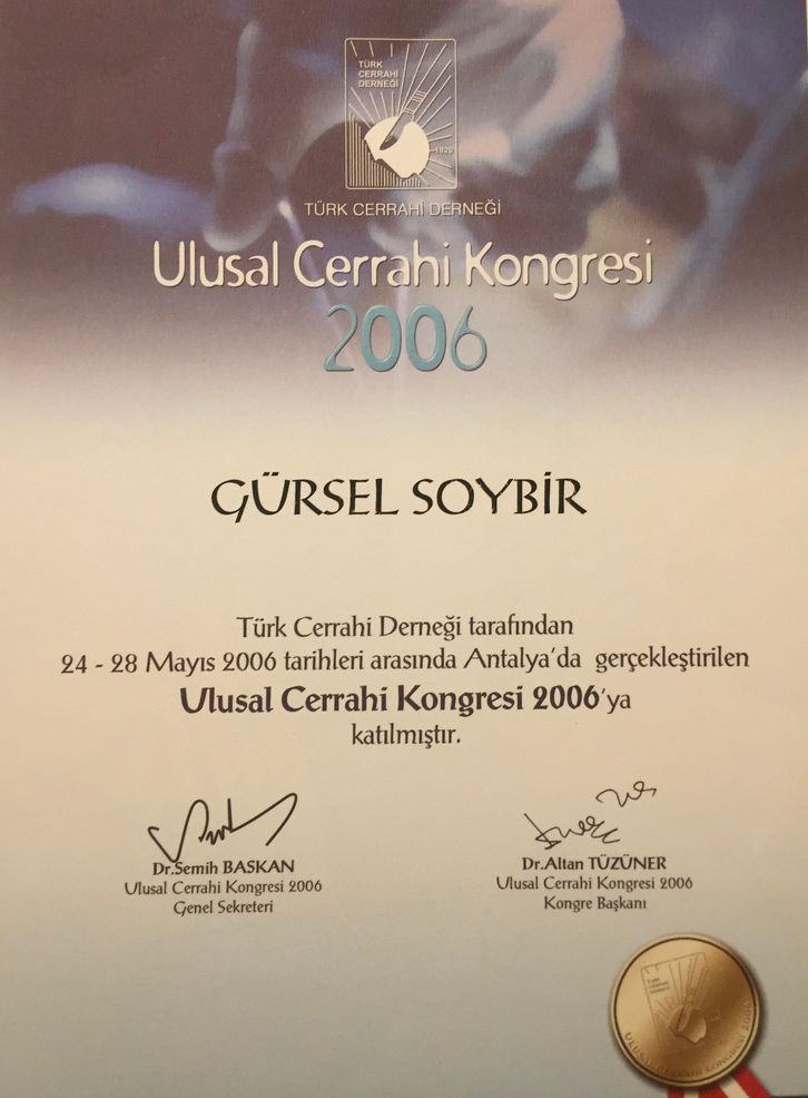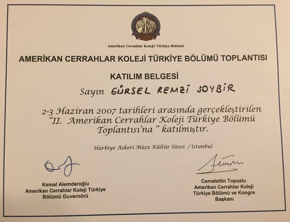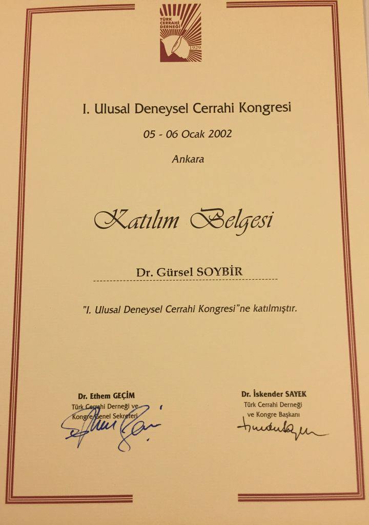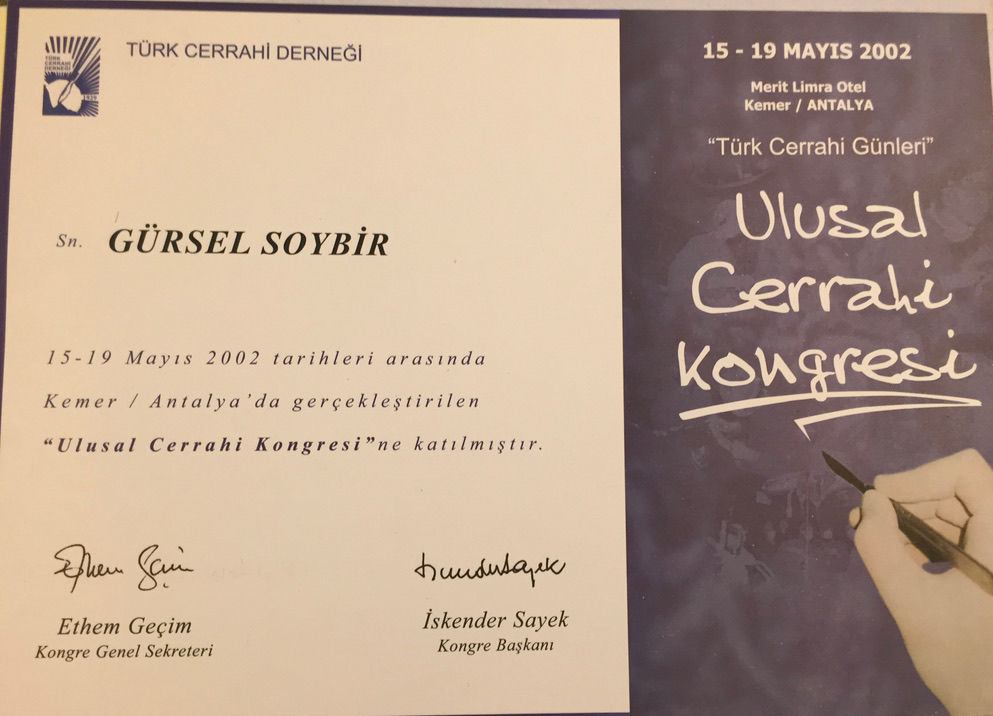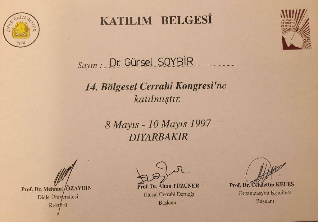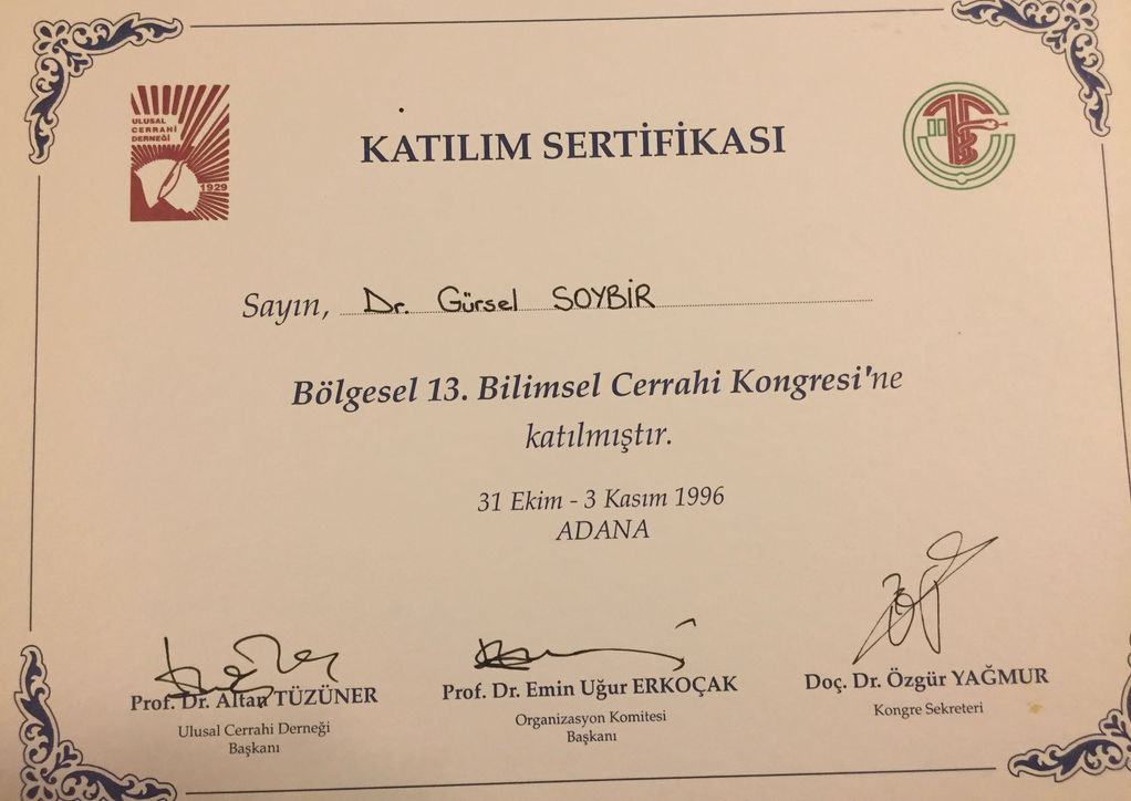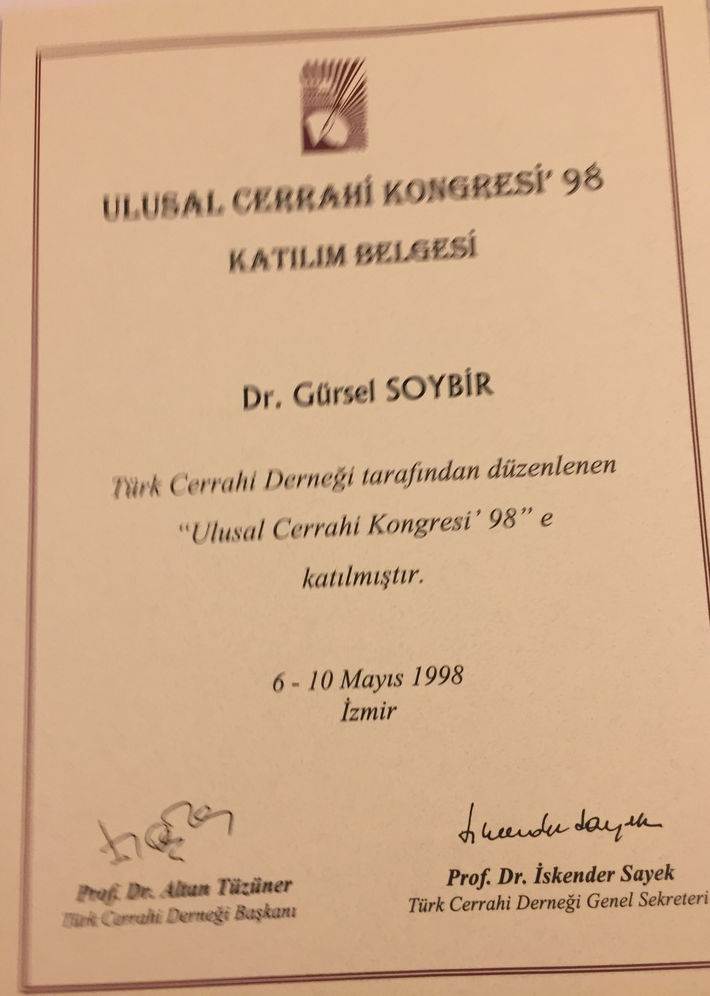 Prof. Dr. Gürsel Remzi Soybir'in Ulusal Kongre & Kurs Katılım Belgeleri