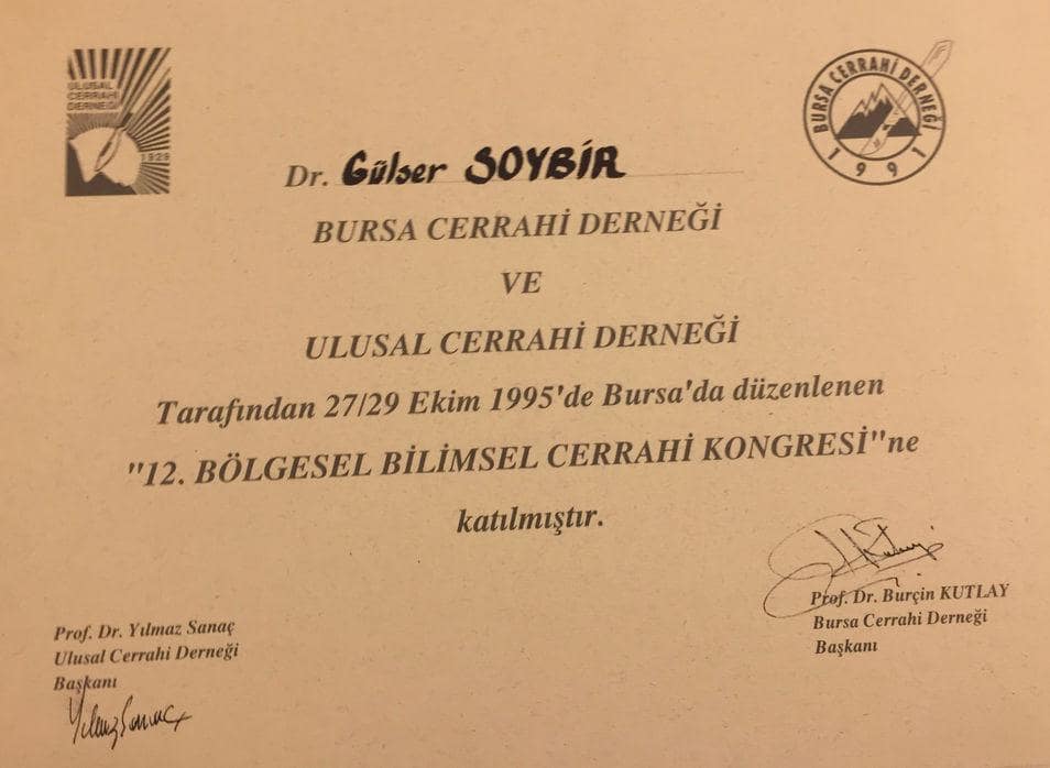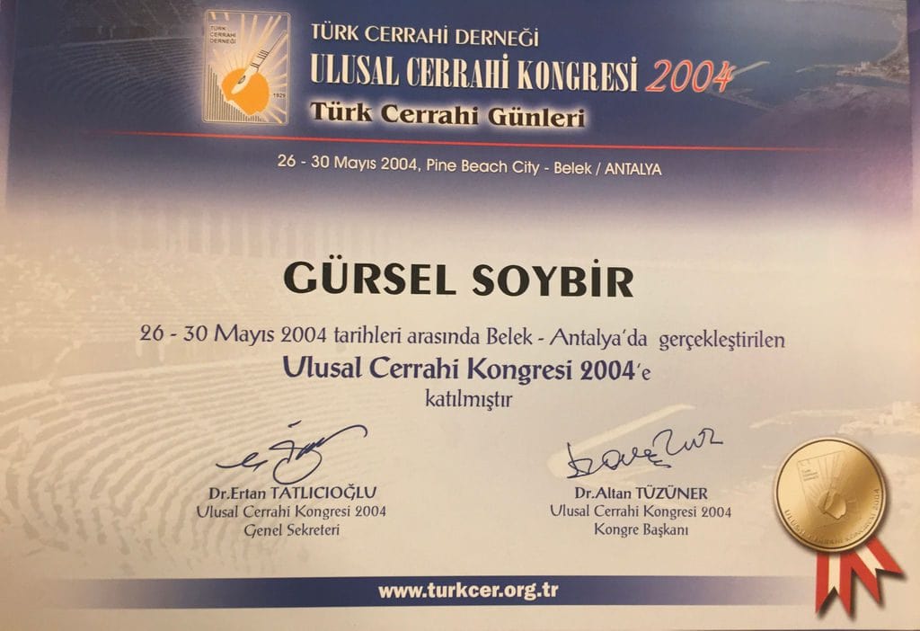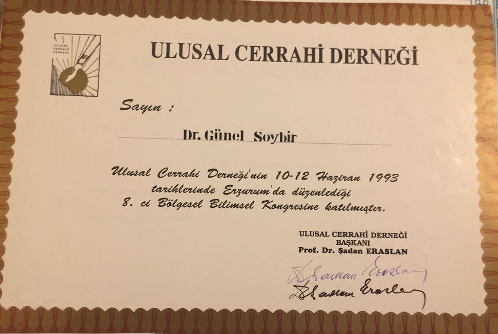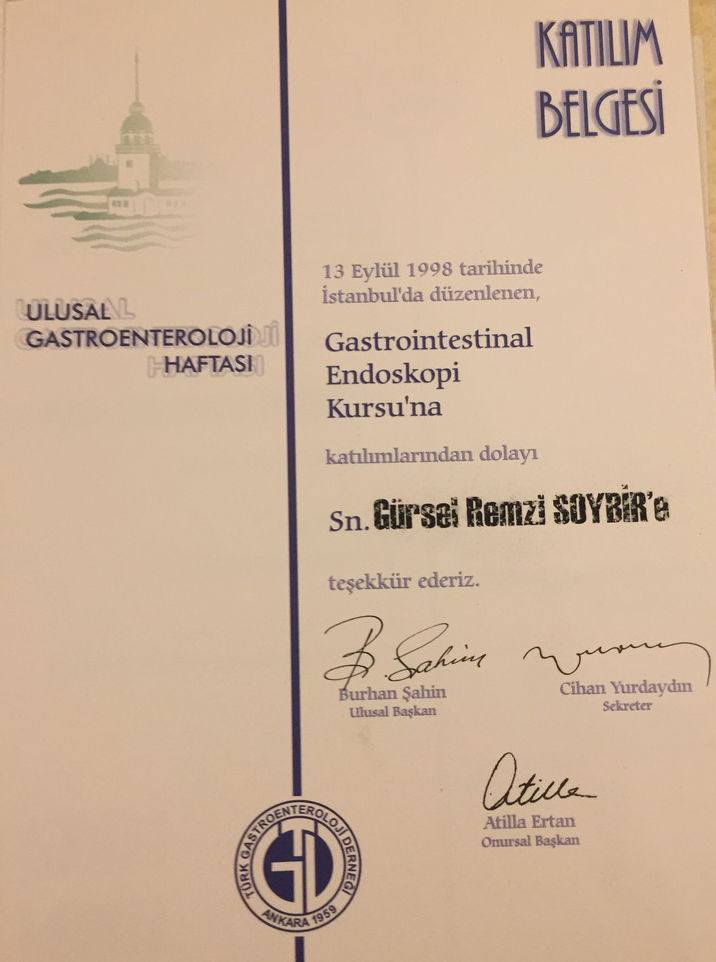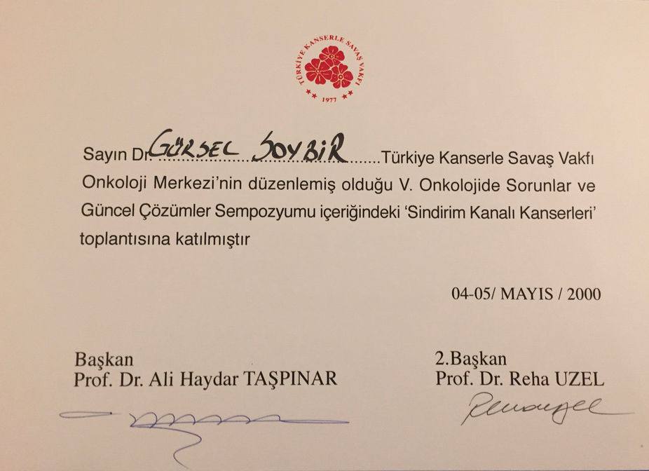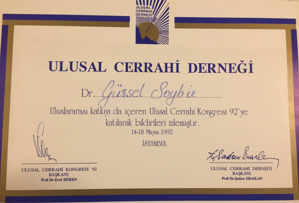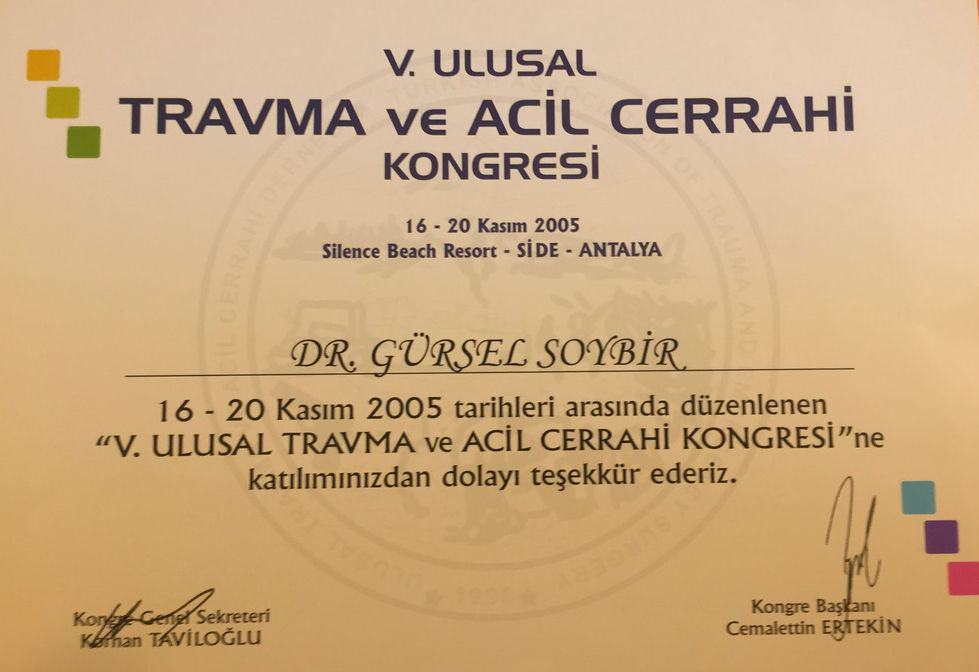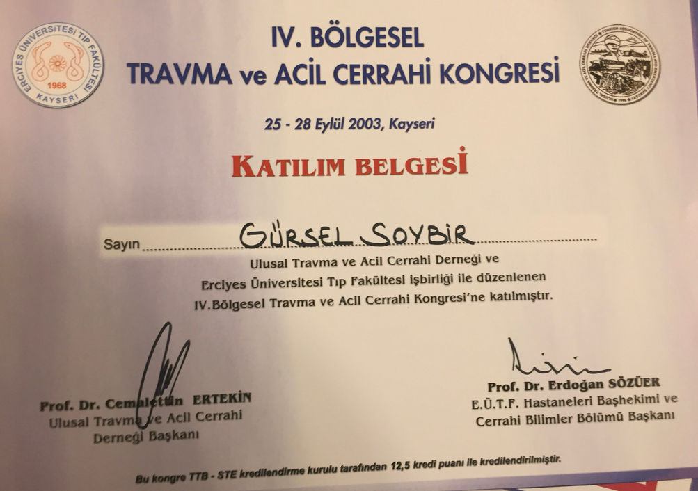 Prof. Dr. Gürsel Remzi Soybir'in Ulusal Kongre & Kurs Katılım Belgeleri