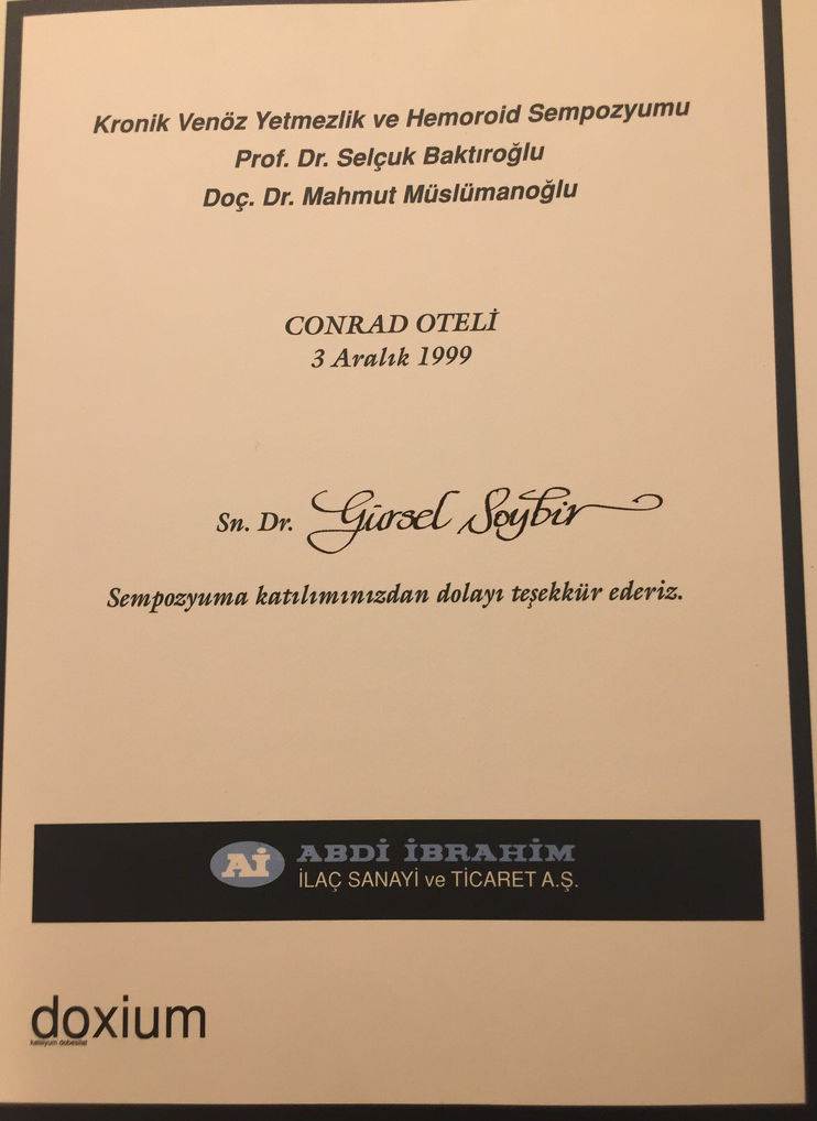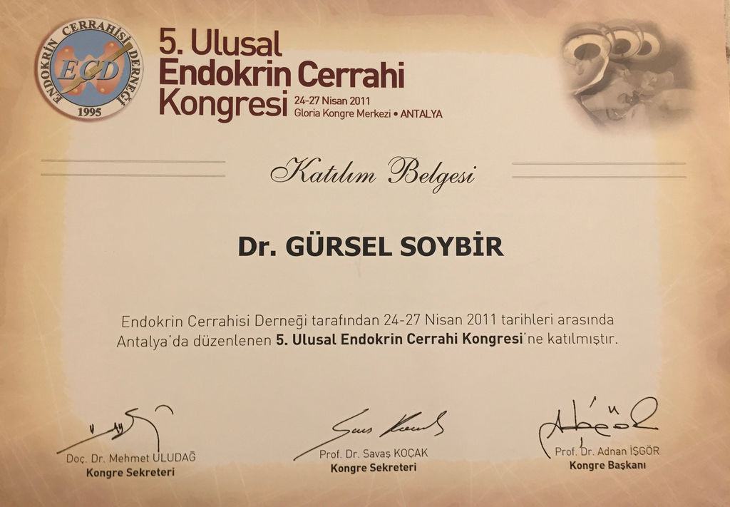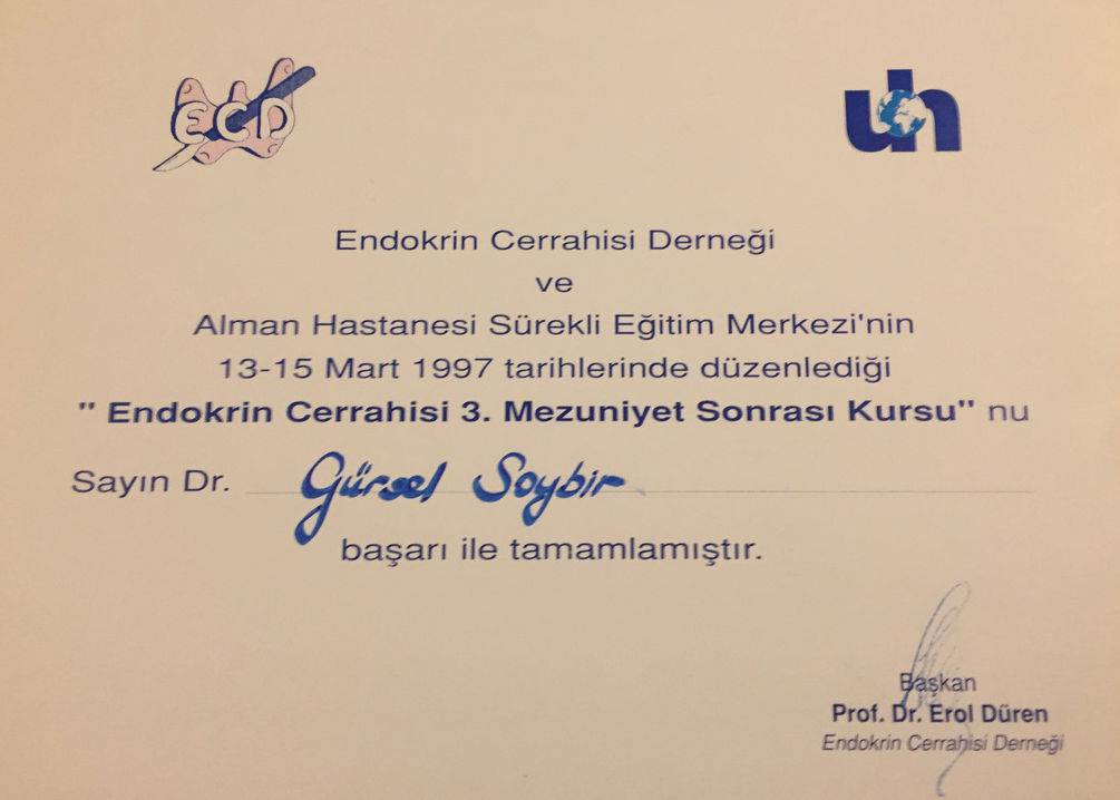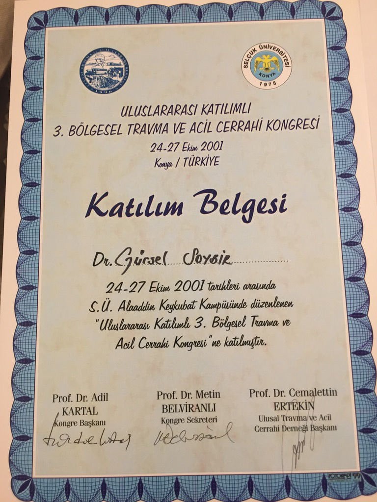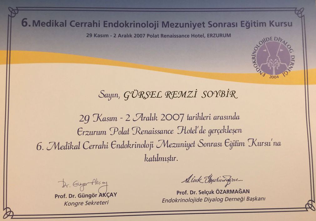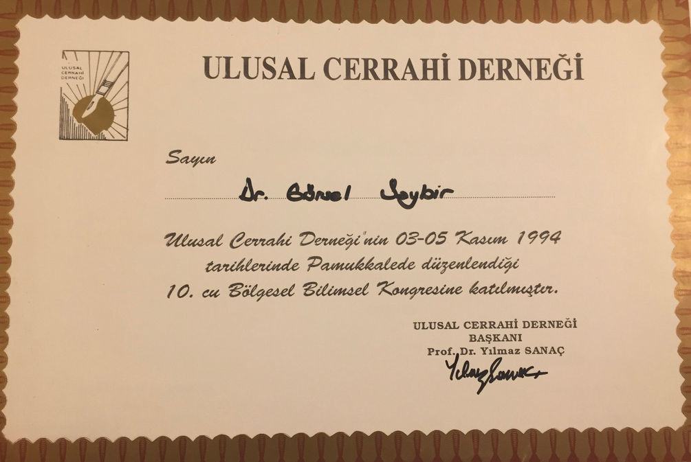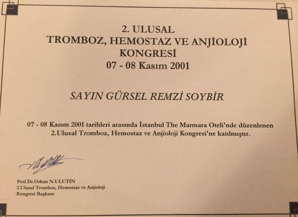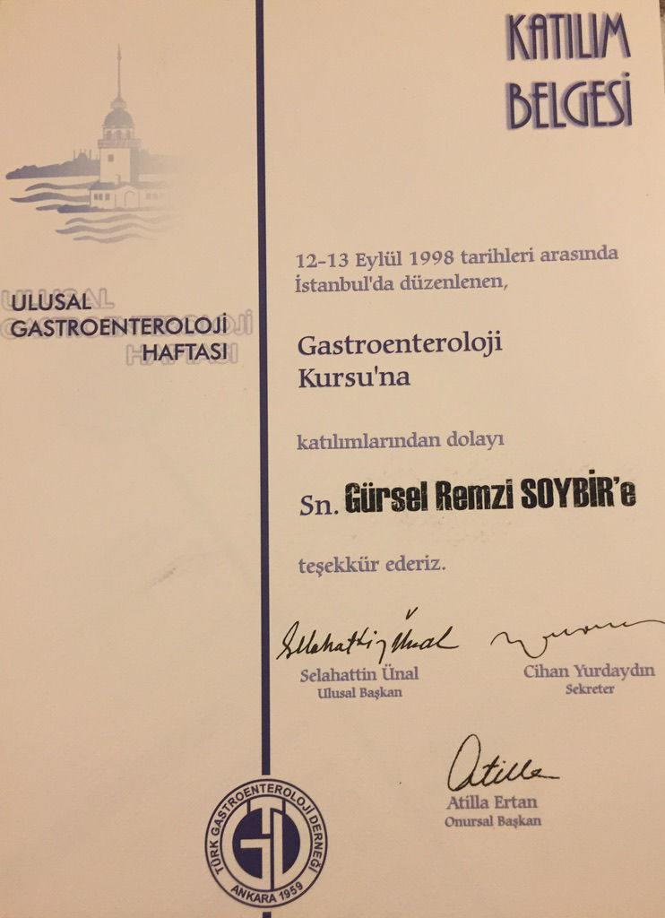 Prof. Dr. Gürsel Remzi Soybir'in Ulusal Kongre & Kurs Katılım Belgeleri