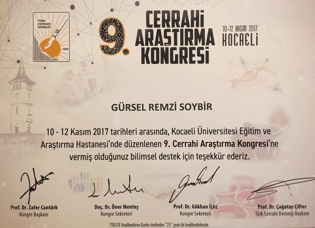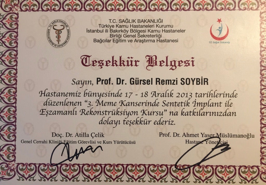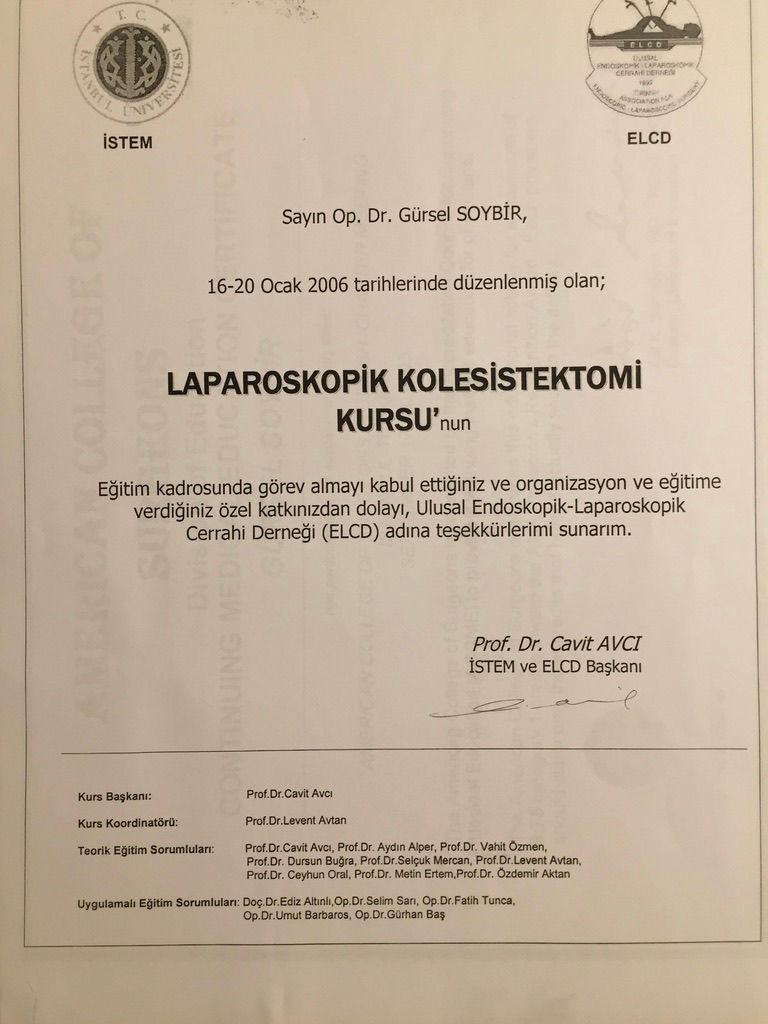 Prof. Dr. Gürsel Remzi Soybir'in Ulusal Kurs Eğiticilikleri Belgeleri