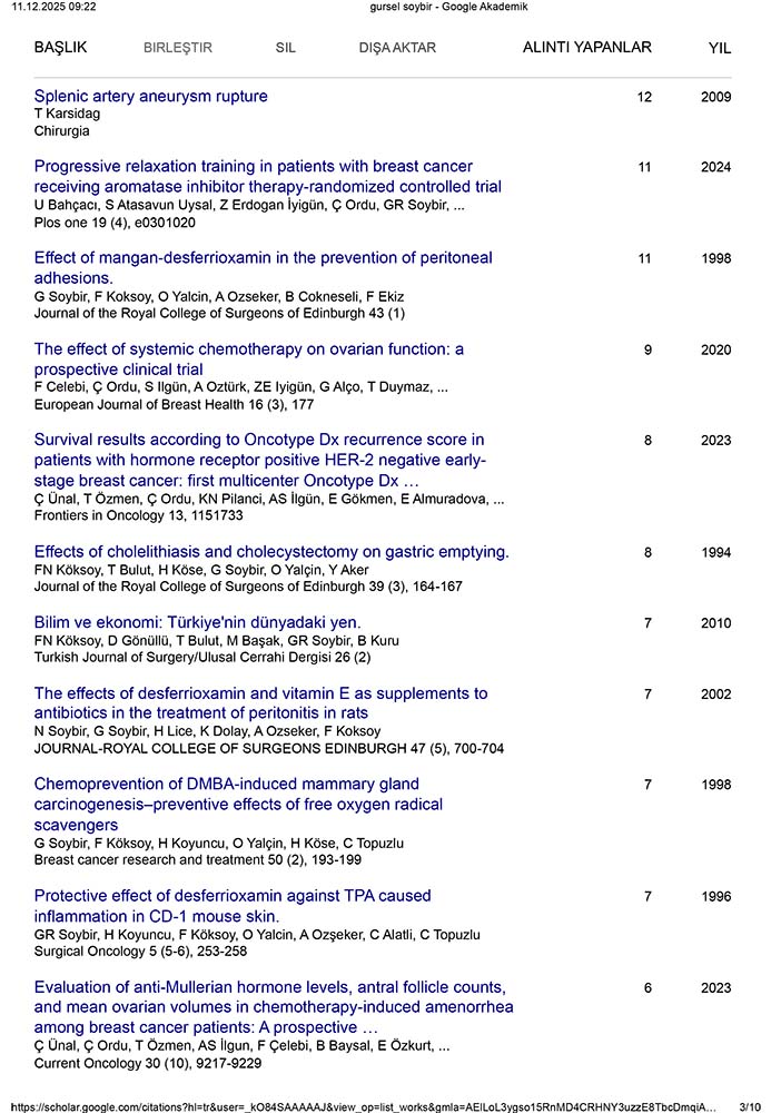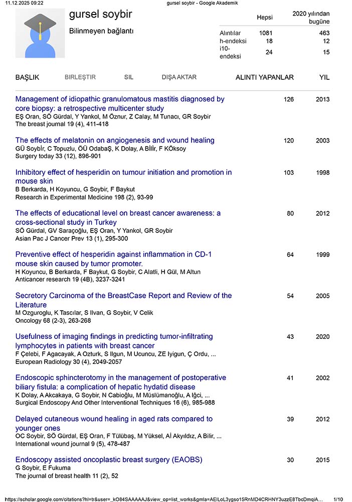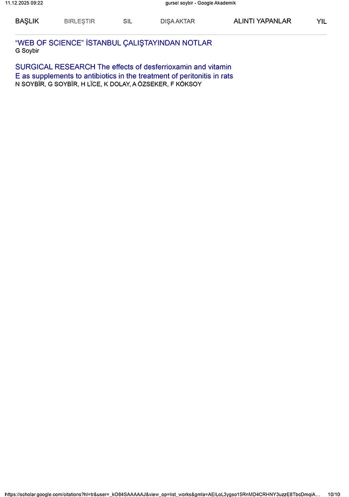 Gürsel Remiz Soybir Hekimlik Endeksi (H Index)